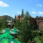 Sommige kamers van de accommodatie in Gniezno bieden een opslagruimte, gratis wifi-verbinding en een flatscreen TV met satellietzenders aan. Ingericht met een bureau, hebben deze kamers een opslag en een zitruimte. Gasten kunnen gebruik maken van een inloopdouche en een apart toilet samen met badlakens.
